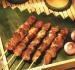 (B.B.Q. marinated chicken on skewer with peanut dressing)